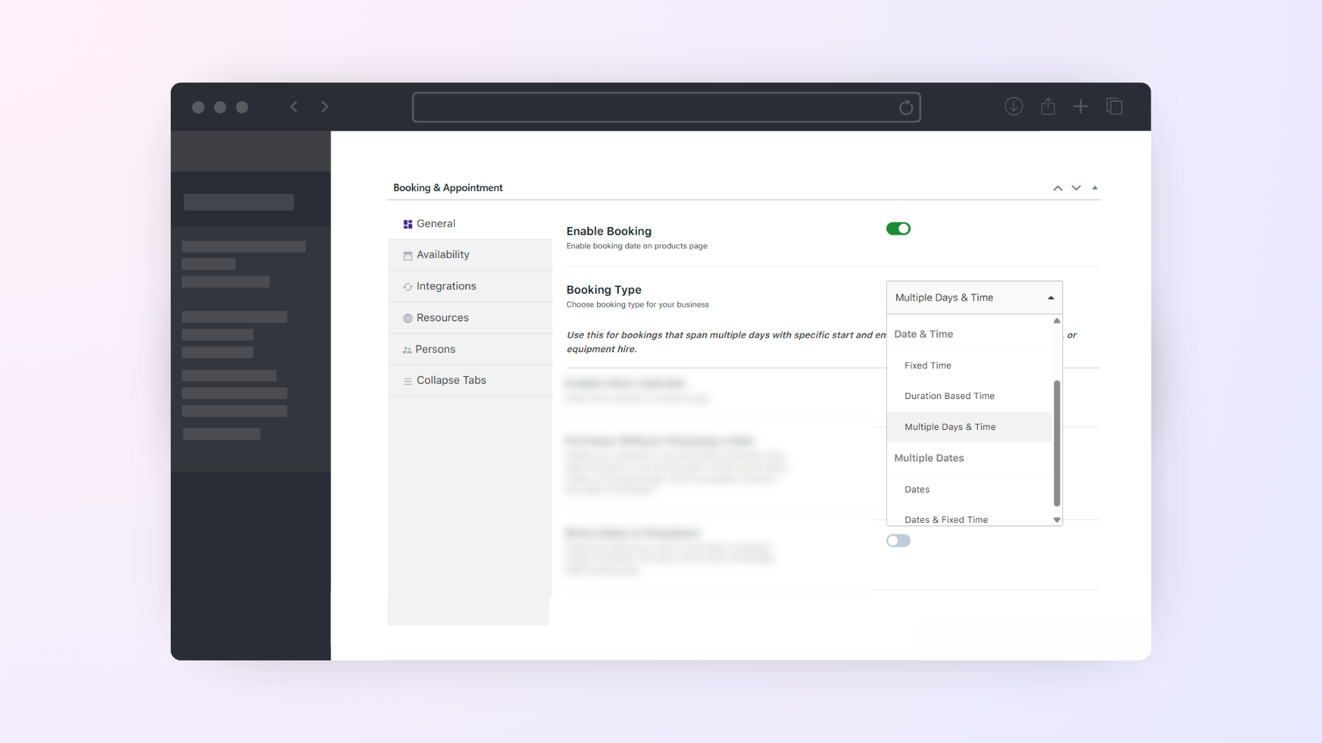 Support different booking styles to match your business needs — from single-day appointments to multi-day rentals or recurring sessions.