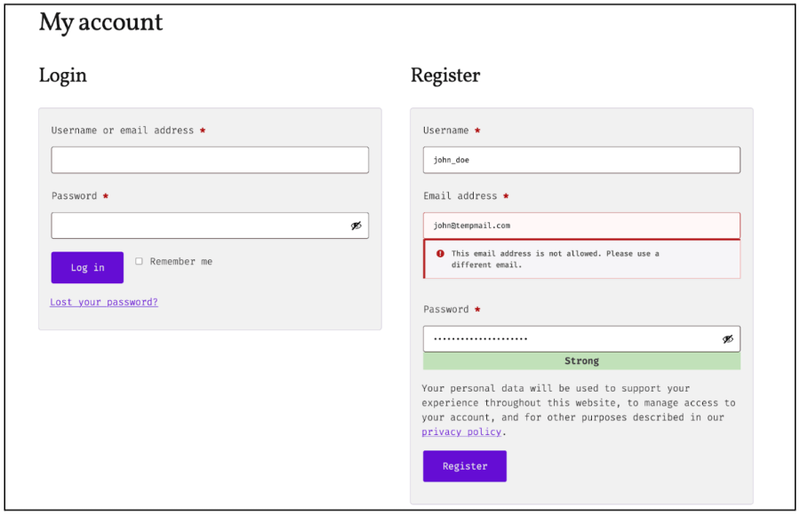 Safeguard your store from fake or spam user signups by validating critical fields during the registration process.