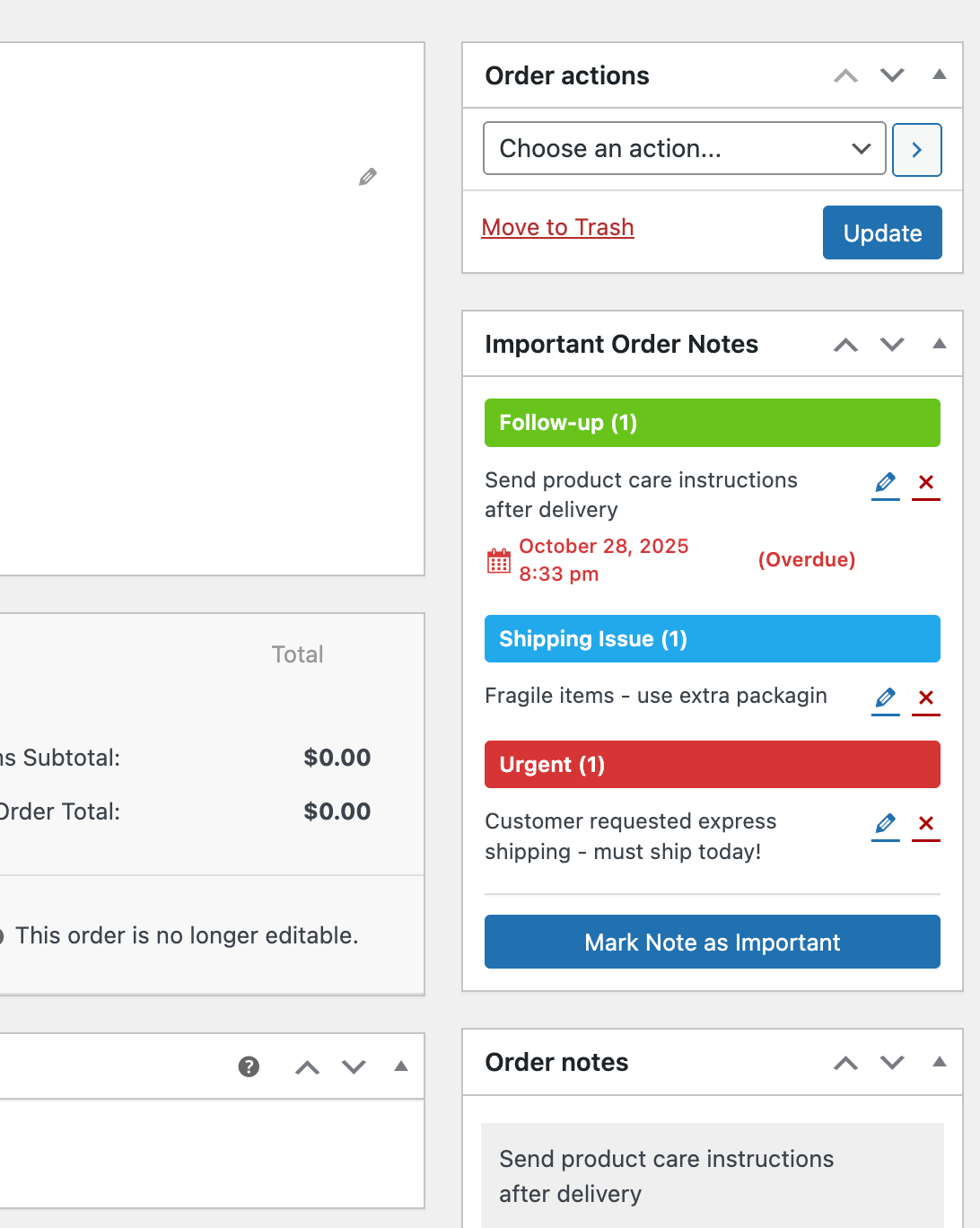 Important Order Notes: Order Edit Page – Mark Note as Important