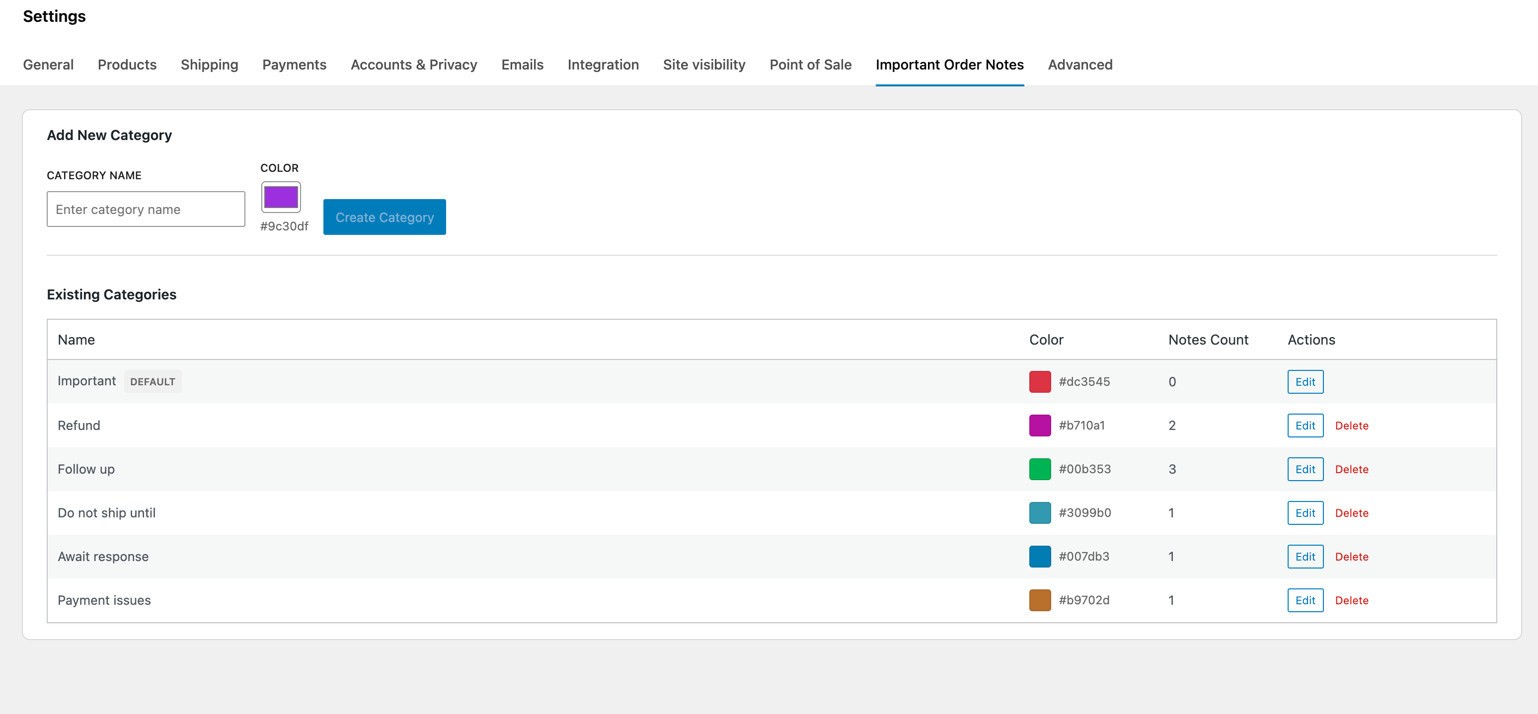 Start by defining the categories you want to use for important notes, such as Follow-up, Complaint, Shipping Issue, or Urgent. Each category can be assigned a color, making important notes instantly recognizable throughout the admin area.