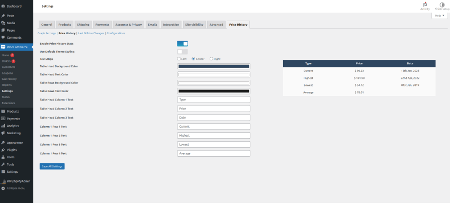 Adjust table colors, text, and layout to fit your style, making the price history visually appealing and user-friendly.