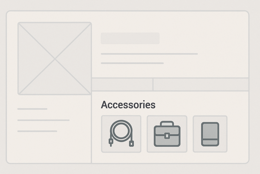 When browsing your products, customers see a new “Accessories” tab alongside Description and Reviews. Inside, they find organized, relevant product suggestions they can add directly to their cart without leaving the page. No more hunting through categories or wondering what else they might need.