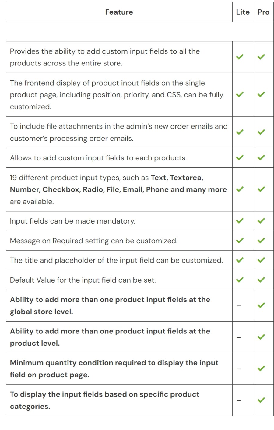 Product input fields for WooCommerce plugin offers 19 different field types for your product page. Each field has its own unique features, values, restrictions, and customization options to give you the flexibility in getting clear information from the users. You can choose where to place the custom fields on the page and how to style them, and you can also set additional charges for your custom input field values.
