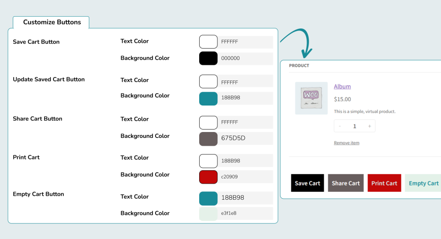 Personalize the appearance of ‘Save Cart’, ‘Share Cart’, ‘Print Cart’, and ‘Empty Cart’ buttons to align with your store’s branding and design