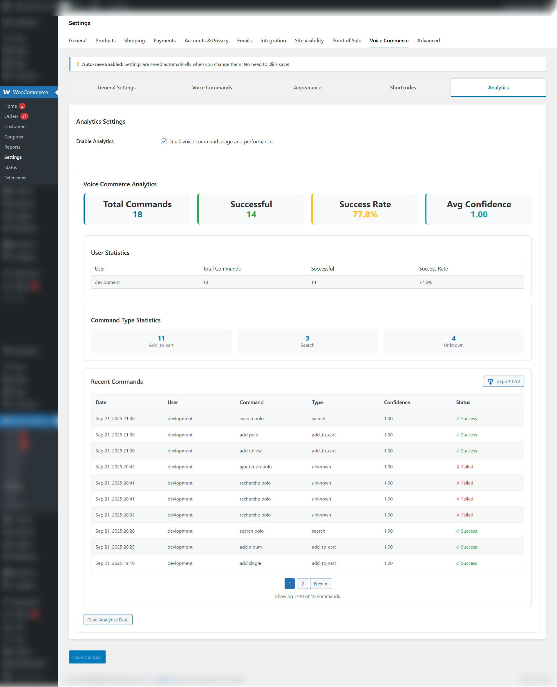 Our Search and Buy by Voice for WooCommerce extension comes with a powerful, built-in analytics dashboard that helps you monitor and optimize voice interactions on your store.