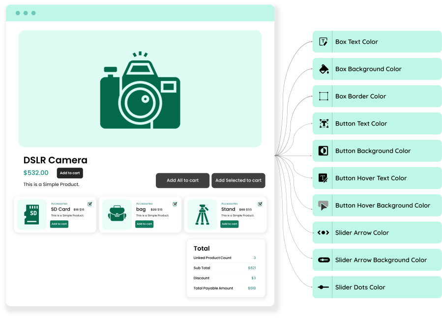 To incentivize higher spending, you have the option to apply fixed or percentage discounts on bundled items, and you can control visibility of these offers based on user roles. This extension provides you with unparalleled flexibility: choose between list or grid layouts, enable sliders, customize labels and colors, and determine whether the main product is available for individual sale or exclusively as part of a bundle.