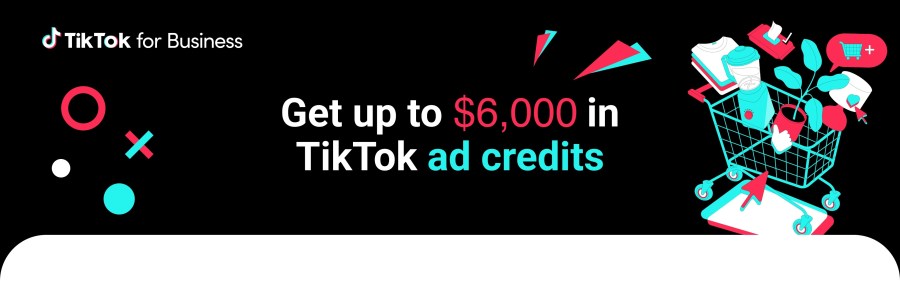 Up to $6K USD in advertising credits (the “Ad Credits” or “Coupon”), [available while supplies last]. The Ad Credits shall expire if not used by 1/30/26. The Ad Credits may be used solely for media placement within the TikTok Ads Manager platform (“TTAM”). The Ad Credits are subject to all applicable TikTok policies, terms, agreements, and other requirements necessary for you to access and use the Ad Credits and TTAM (the “Ad Policies”). You hereby agree and acknowledge that you shall adhere to all applicable Ad Policies including, without limitation, participating in TTAM onboarding and creating a TTAM account. You may not transfer Ad Credits to any third party including, without limitation, your affiliates. Additional terms apply.
