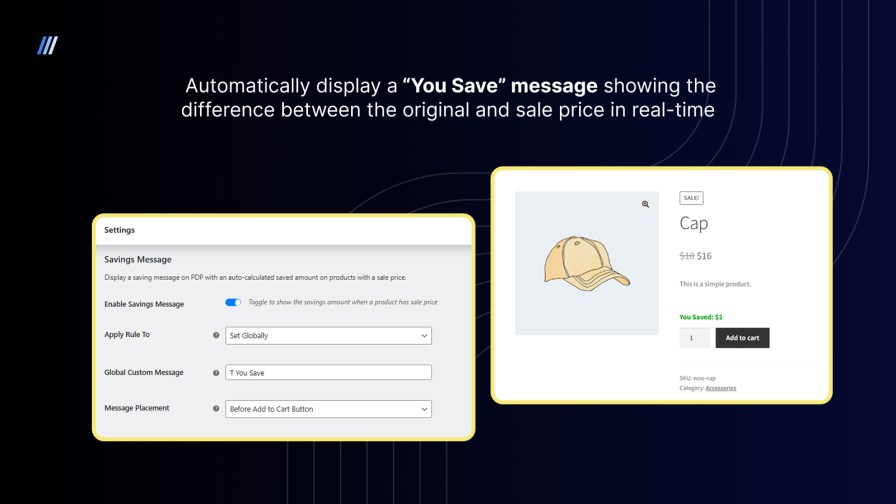 Discounts are powerful — but they work even better when customers see exactly how much they’re saving. With the Extend –  Product Page Customizer, you can automatically display a “You Save” message showing the difference between the original and sale price in real-time.