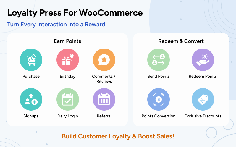 Whether you want to encourage sign-ups, motivate referrals, or reward purchases, Loyalty for WooCommerce Points Plugin gives you complete control to design loyalty plans that fit your business goals