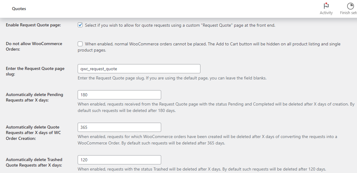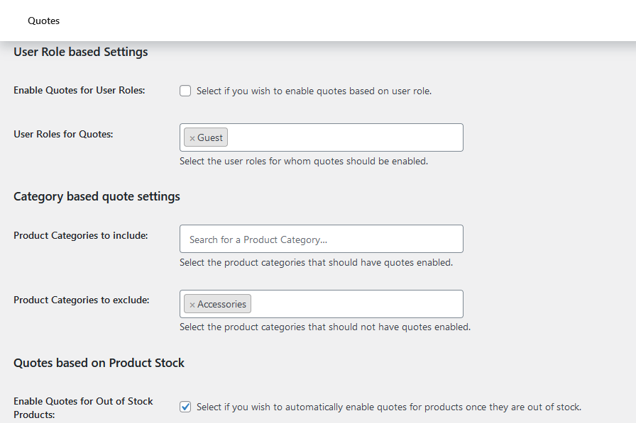 Determine how the plugin should handle cases where users add both quote-only and purchasable products to the same cart. You can either process payment for the purchasable items at checkout and automatically create a separate order for the quote products, or convert the entire cart into a quote order.