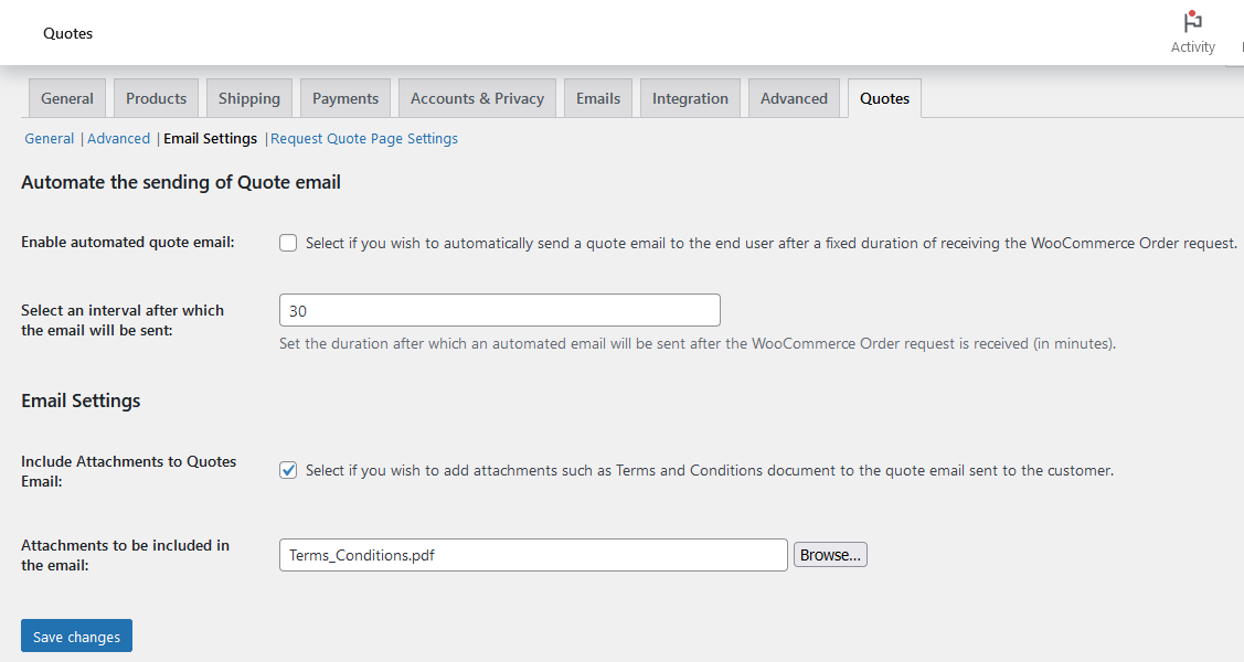 Enable the Request Quote form with a single click. This adds a Request Quote button on single product pages and the standard WooCommerce Add to Cart button.