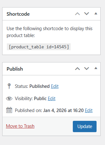 You can embed a product table on landing pages, category pages, content pages, or even inside blog posts — without touching code. Each shortcode represents a unique product table with its own layout, filters, and product selection rules.